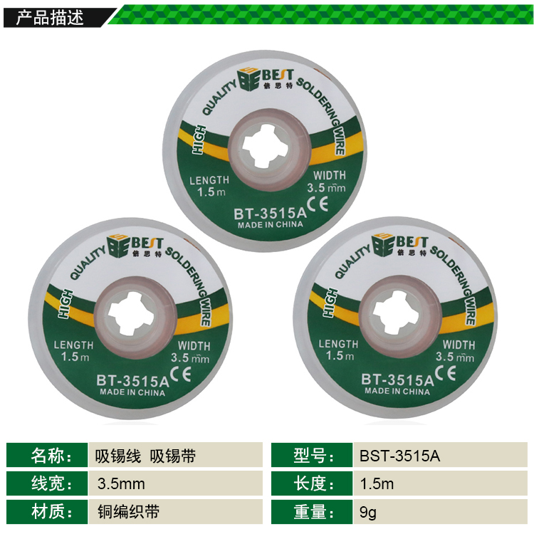 ? 产品名称: 吸锡线 吸锡带? 产品型号: BST-3515A? 产品类别: 吸锡线系列