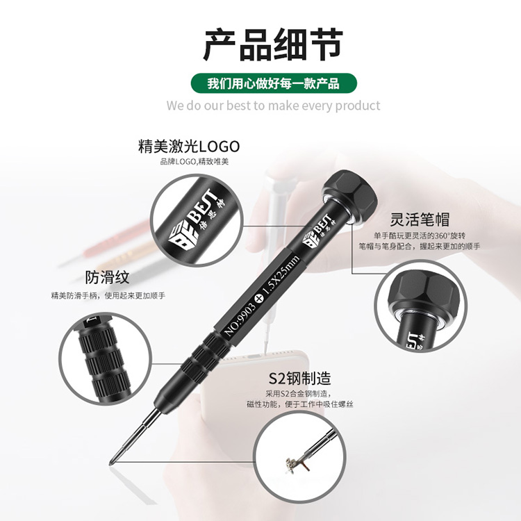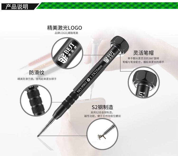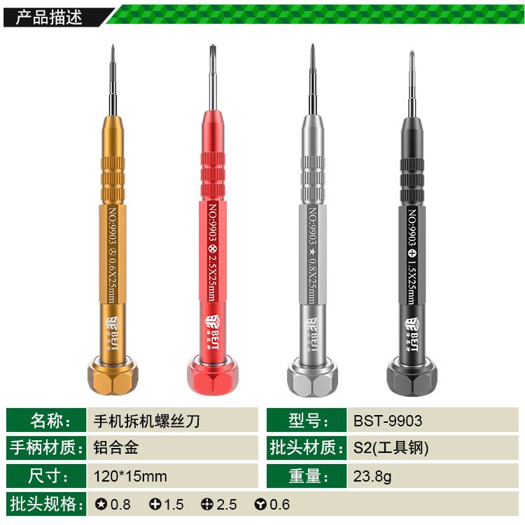 ? 产品名称: 手机拆机螺丝批 精密铝合金螺丝批? 产品型号: BST-9903? 产品类别: 螺丝批系列