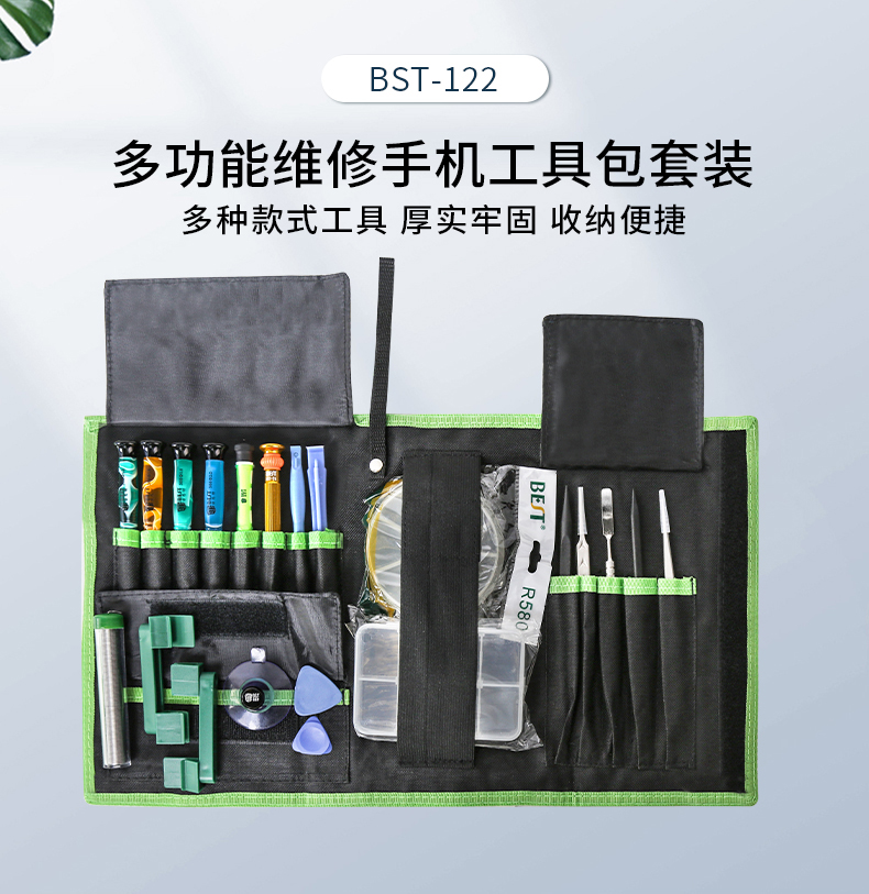 返回当前位置: 首页 / 产品中心 / BST-122 多功能维修手机工具包可维修家用电器相机手机电脑钟表等 21pcs