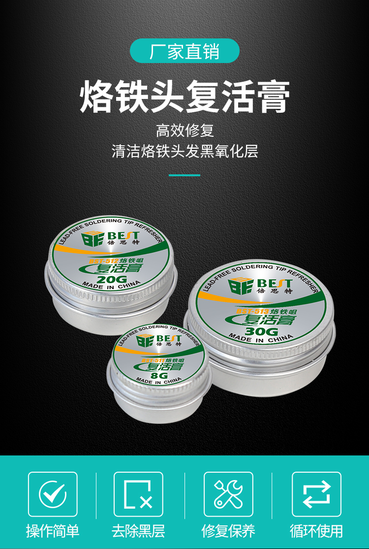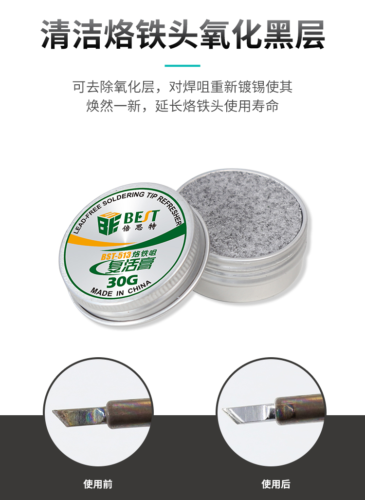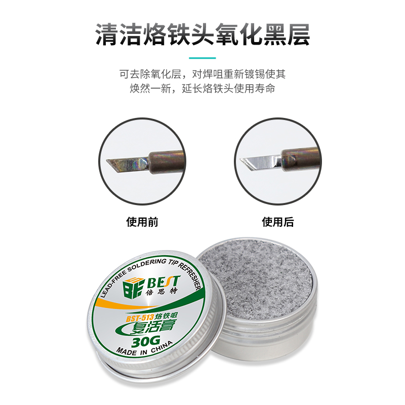 返回当前位置: 首页 / 产品中心 / BST-511/512/513 烙铁头复活膏 烙铁头发黑氧化层高效修复 焊接烙铁咀复活膏 焊嘴清洁