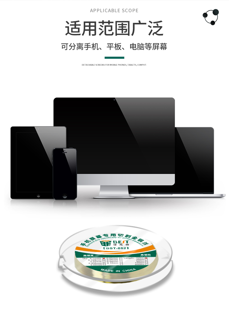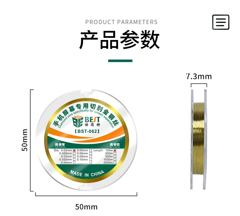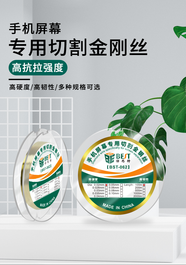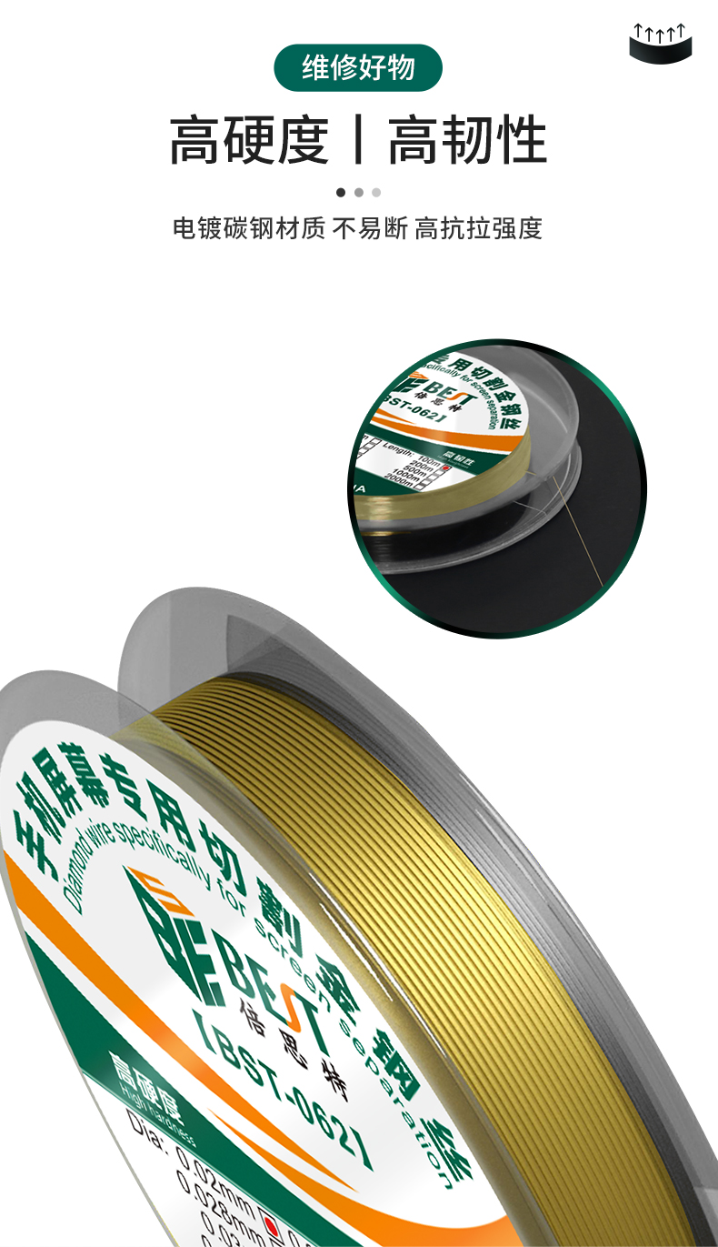 返回当前位置: 首页 / 产品中心 / BST-062 高硬度特种金刚丝 手机屏幕切割丝 分离线金钢丝拉线100m