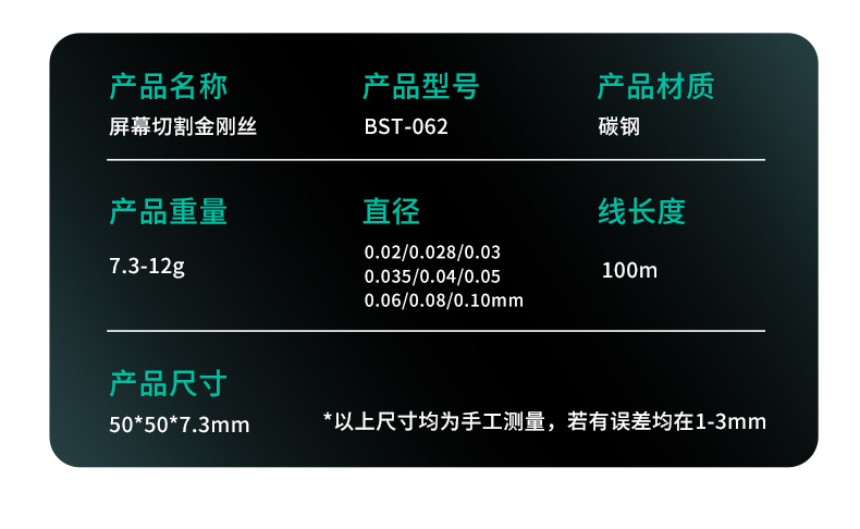 ? 产品名称: 金刚丝? 产品型号: BST-062? 产品类别: 锡线耗材系列
