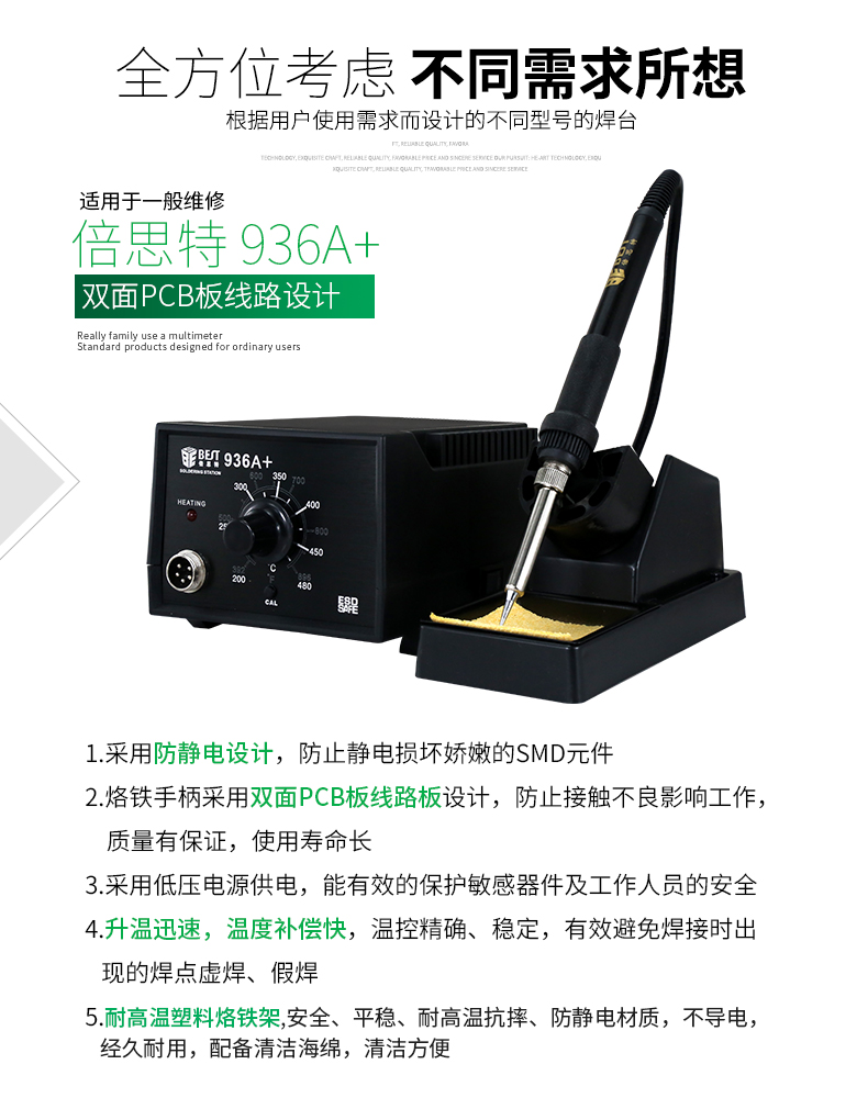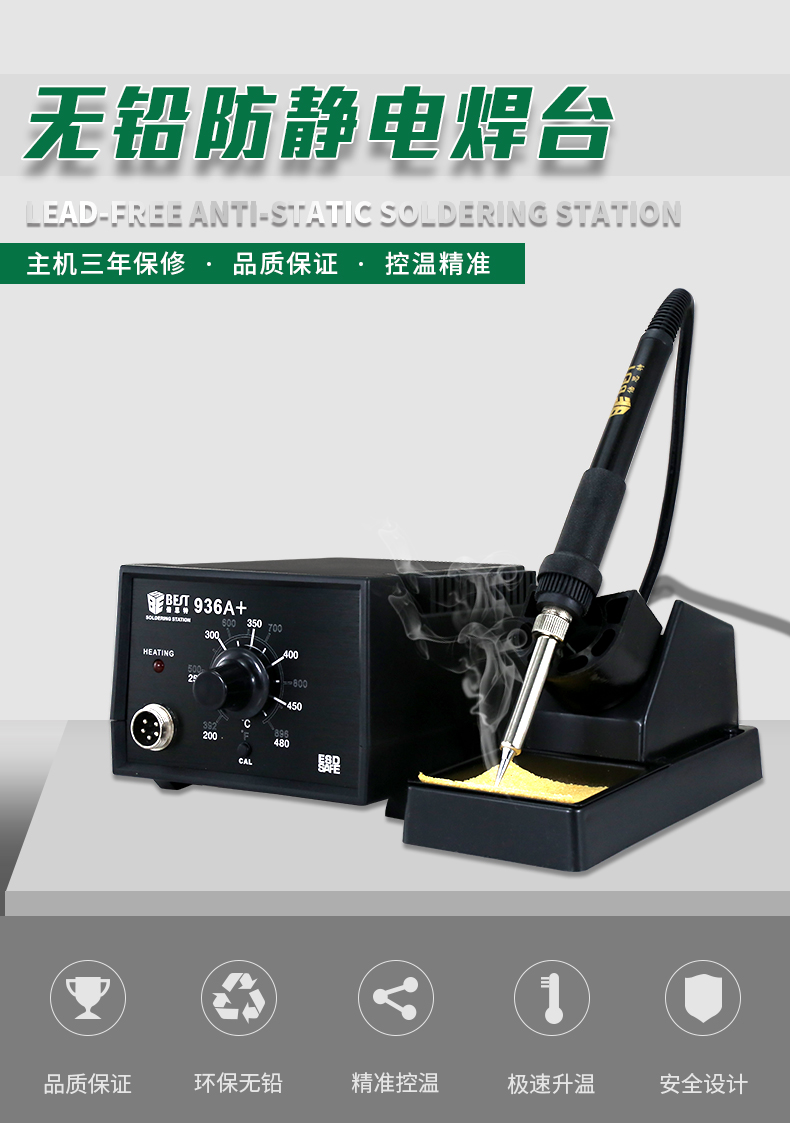 返回当前位置: 首页 / 产品中心 / BST-936A+ 防静电恒温电烙铁 工业拆焊台 手机维修拆焊台(黑色)