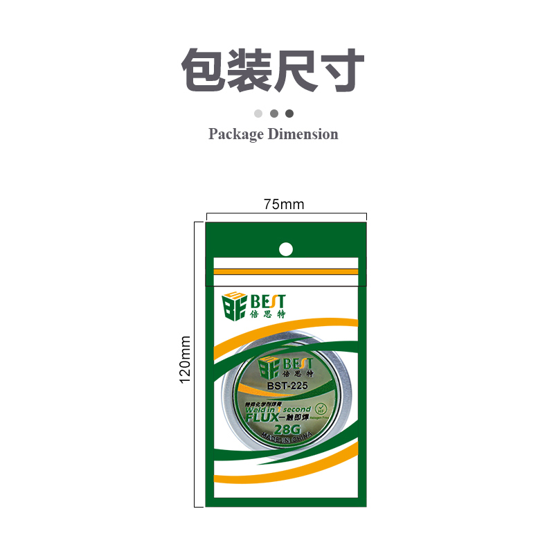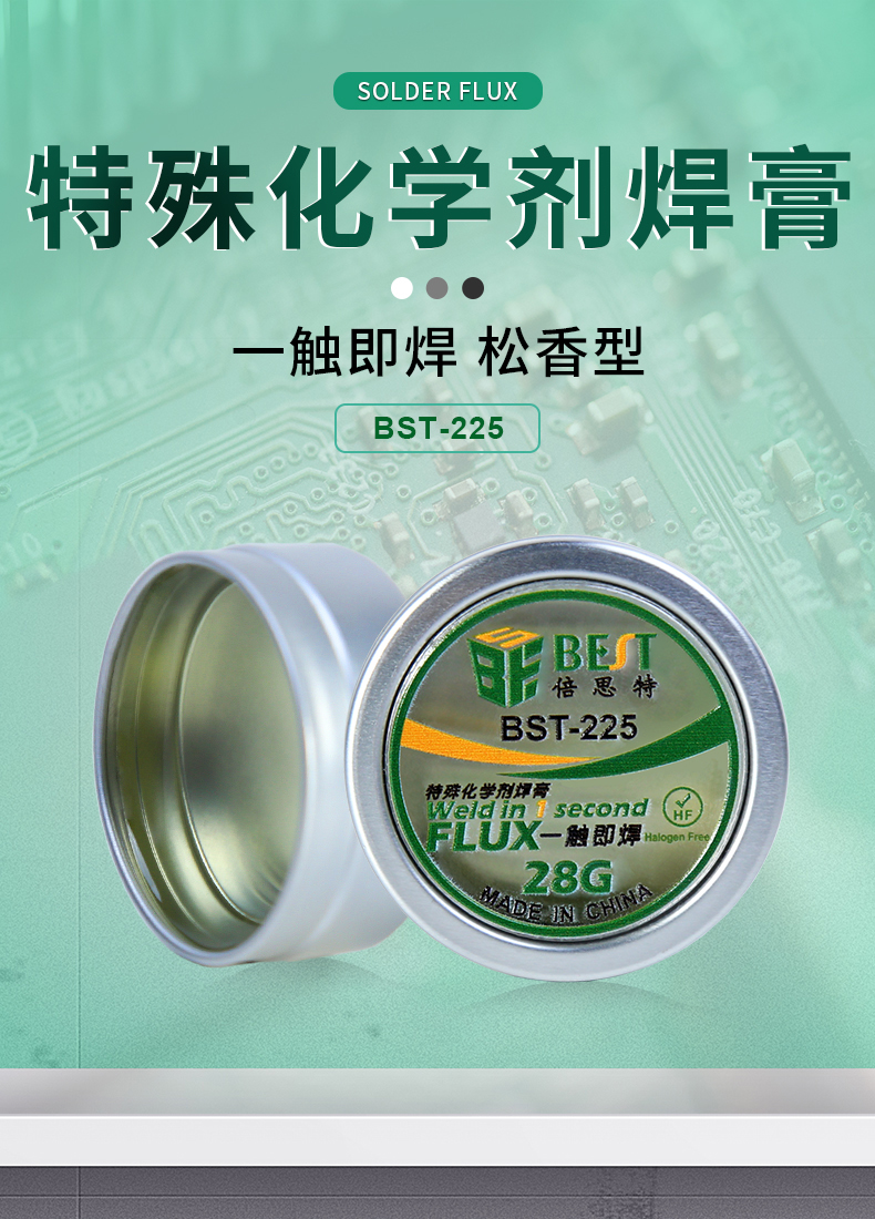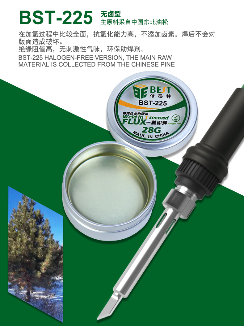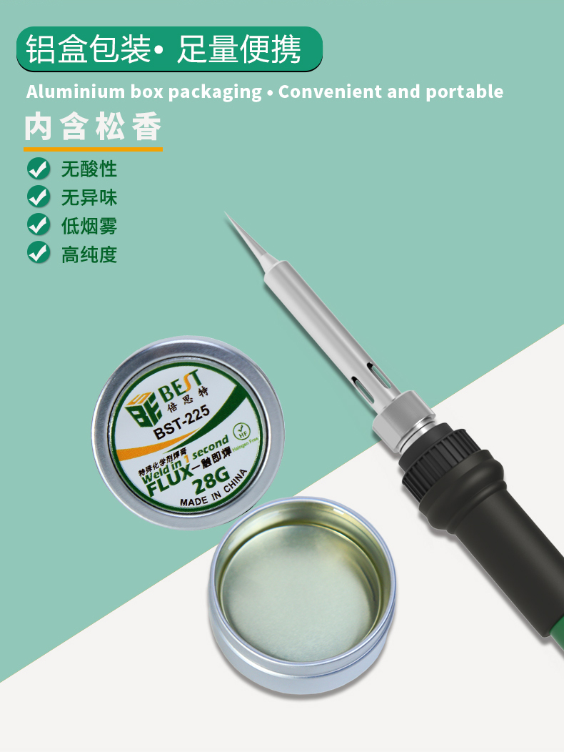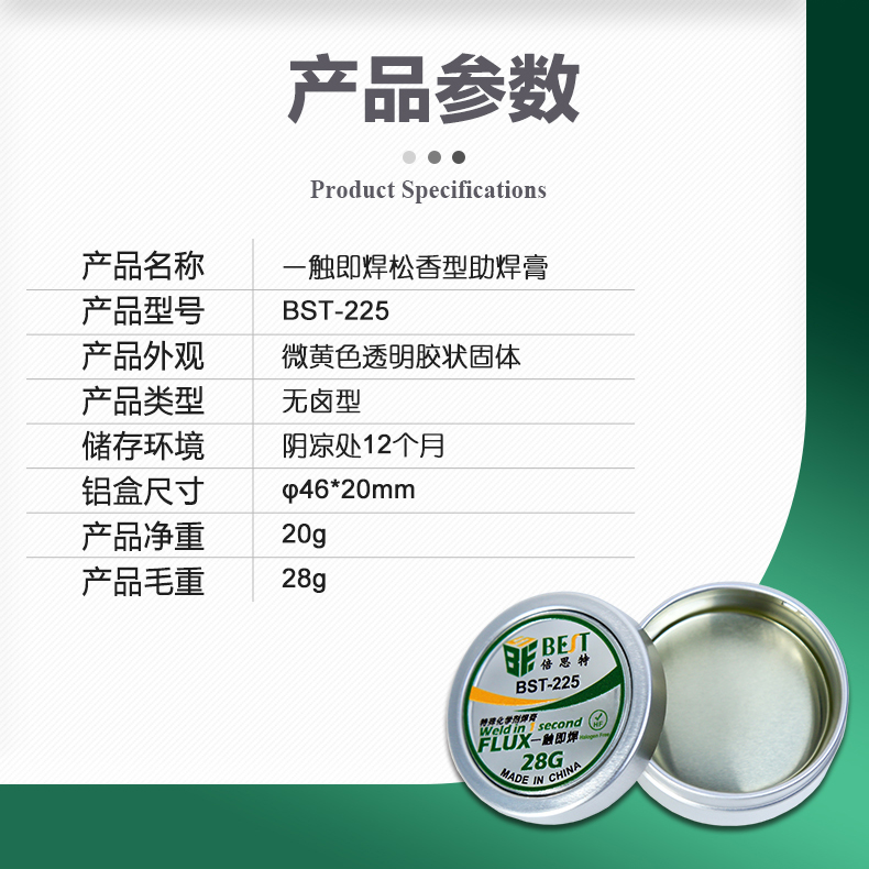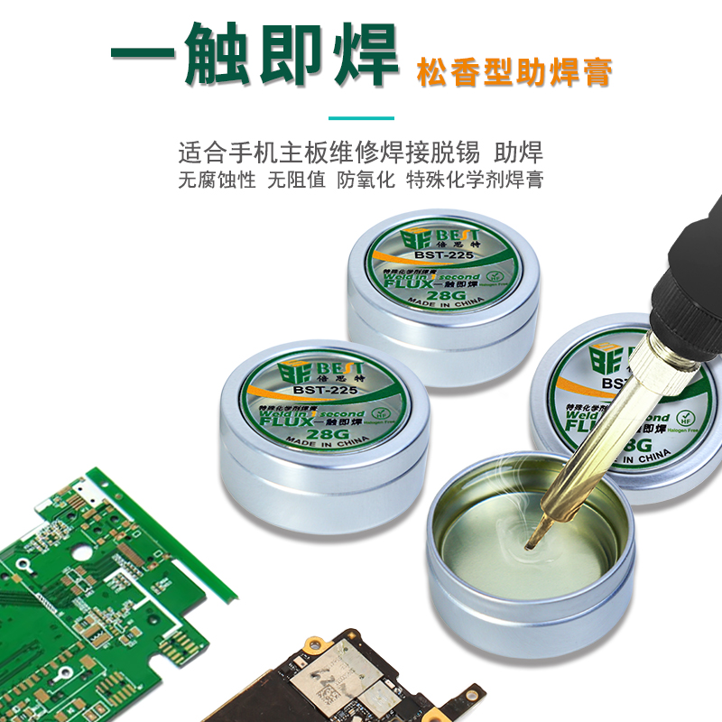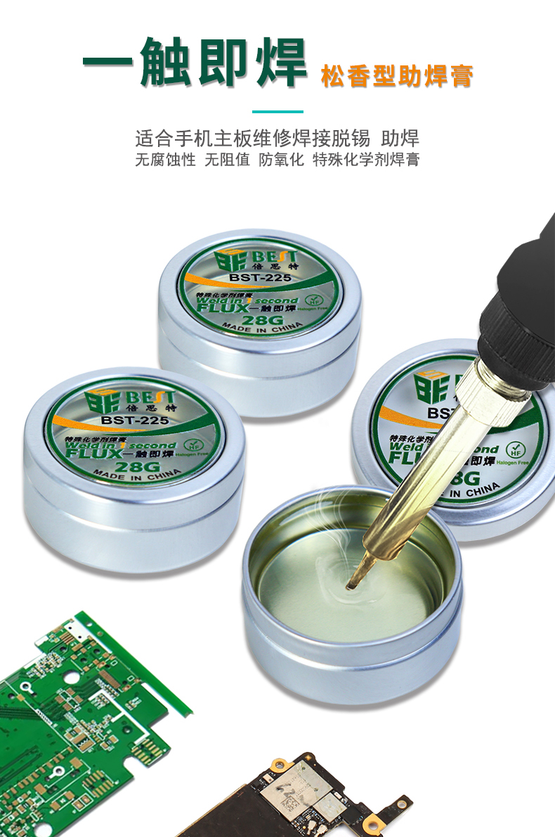 ? 产品名称: 一触即焊松香型助焊膏? 产品型号: BST-225? 产品类别: 锡浆焊油系列? 净含量: 20g