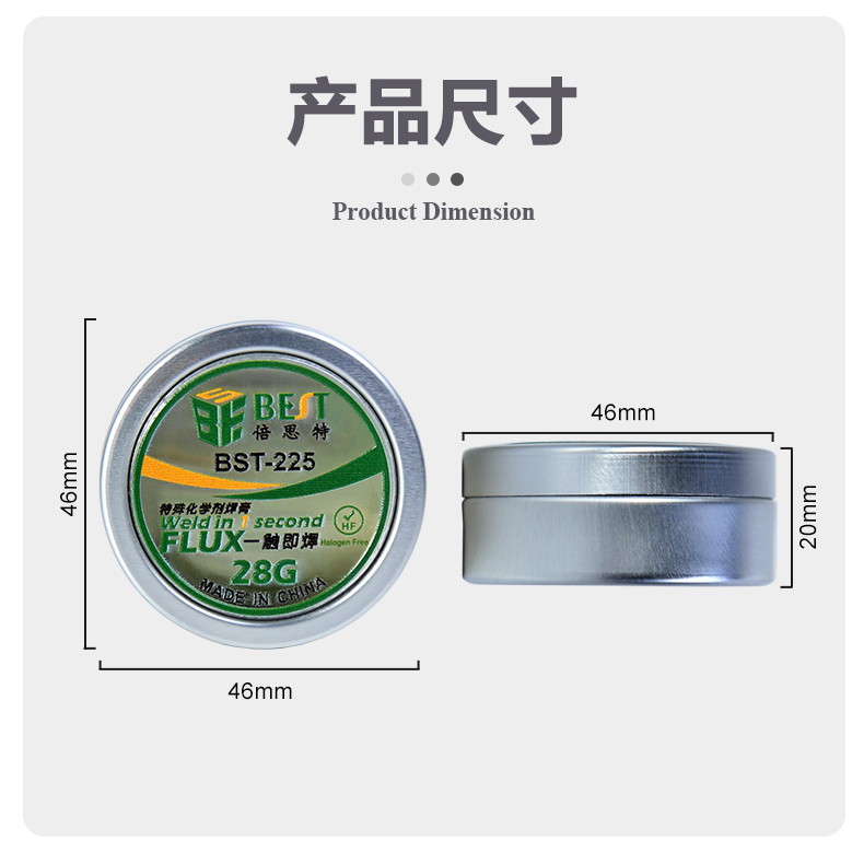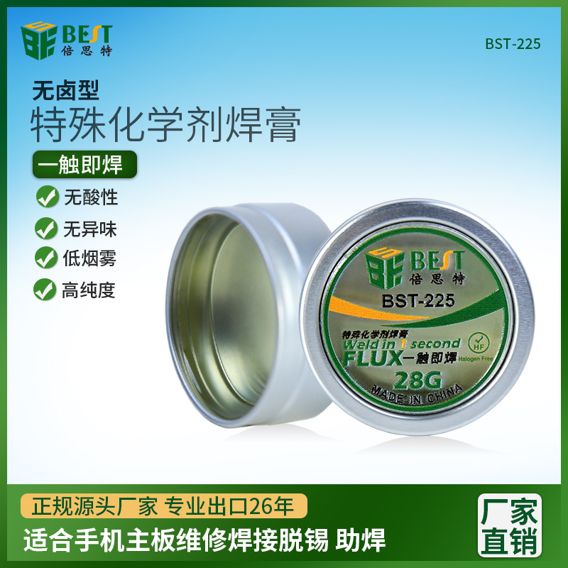 返回当前位置: 首页 / 产品中心 / BST-225 焊接助焊剂 特殊化学剂焊膏 一触即焊松香型助焊膏 环保无铅无卤素焊油 铝盒透明低温助焊松香