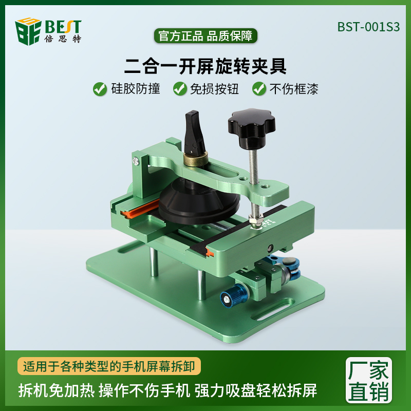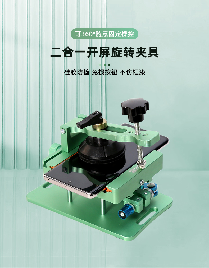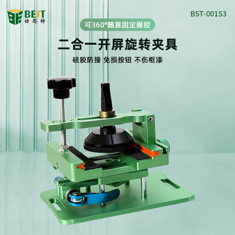 返回当前位置: 首页 / 产品中心 / BST-001S3 二合一开屏旋转夹具 手机维修专用旋转通用夹具 改良轴承 多功能旋转夹具iPhoneX 11 12Pro苹果安卓手机拆玻璃后盖固定工具