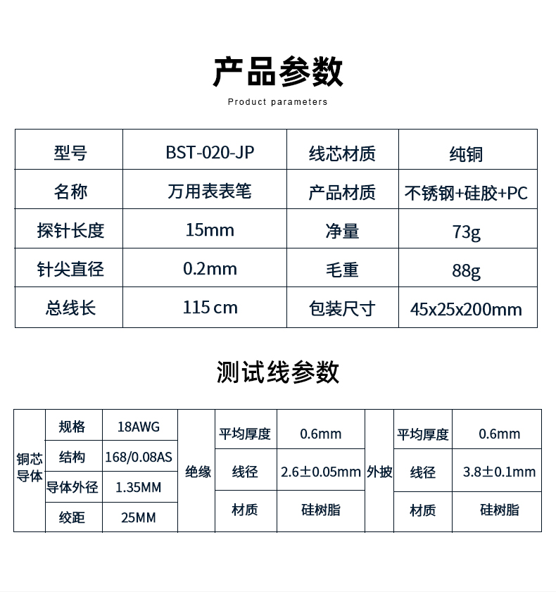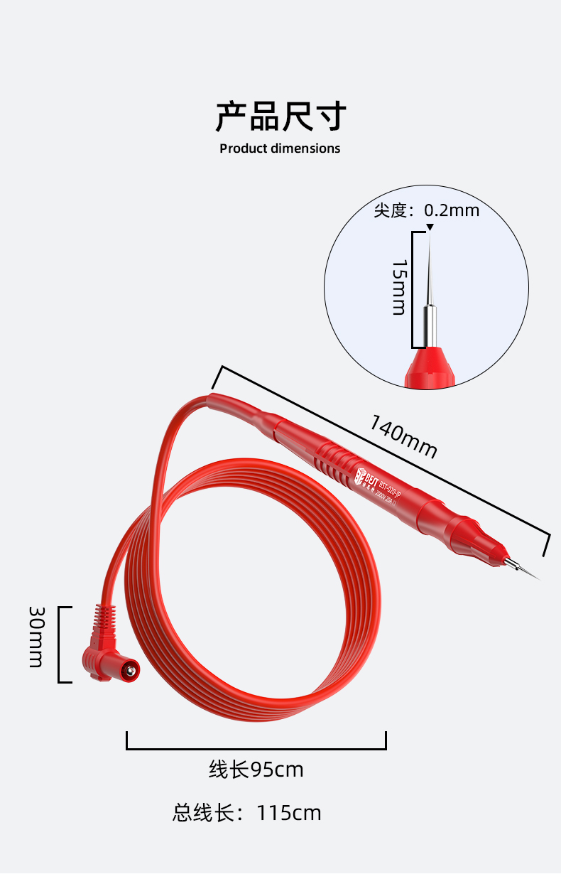 ? 产品名称: 超导细尖表笔? 产品型号: BST-020-JP? 产品类别: 表笔线系列
