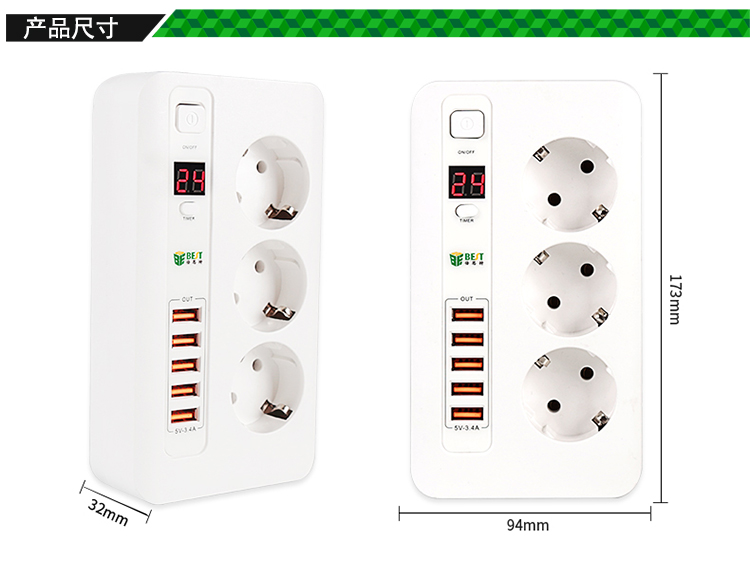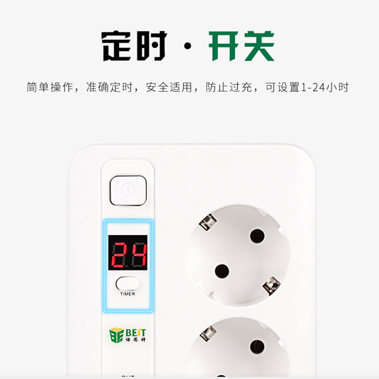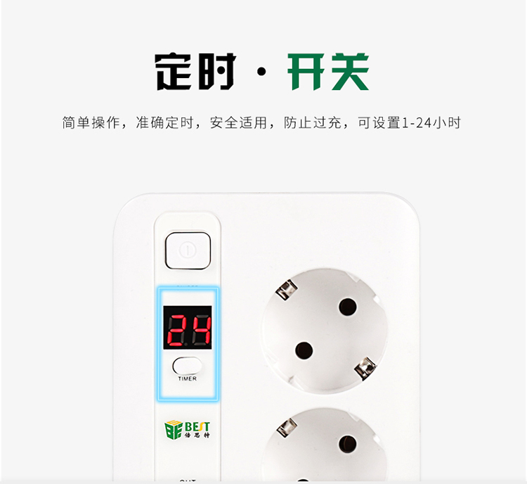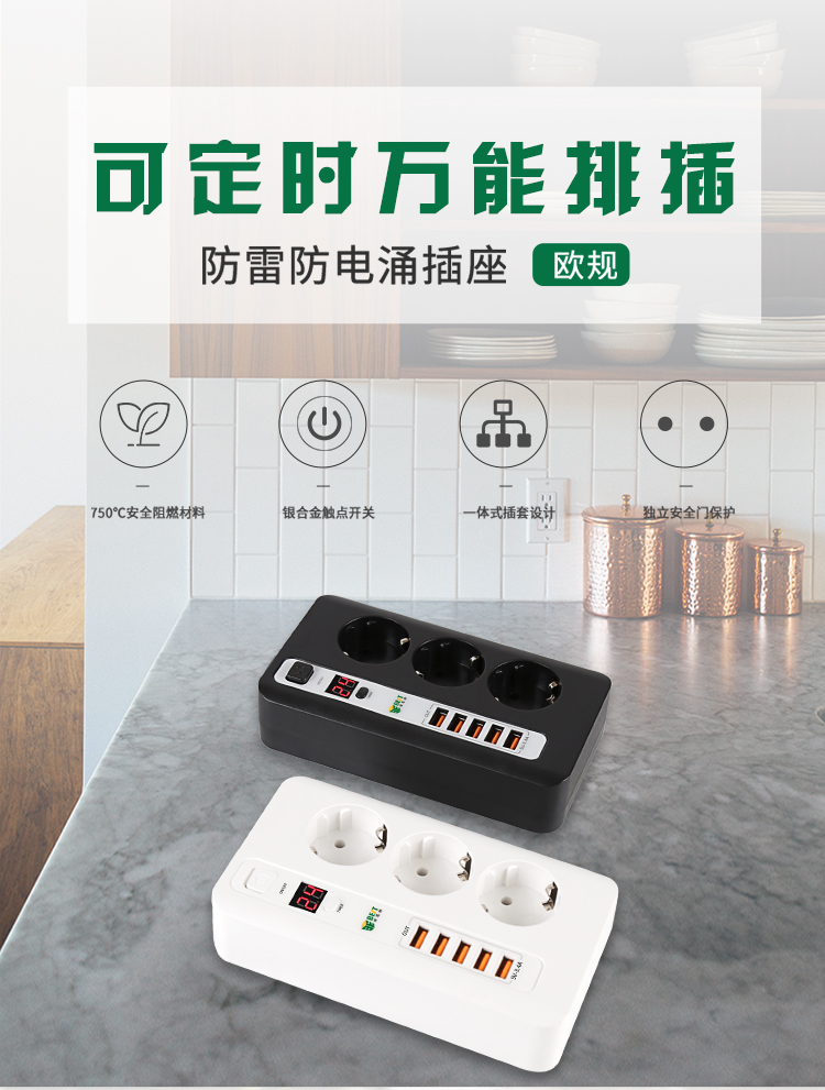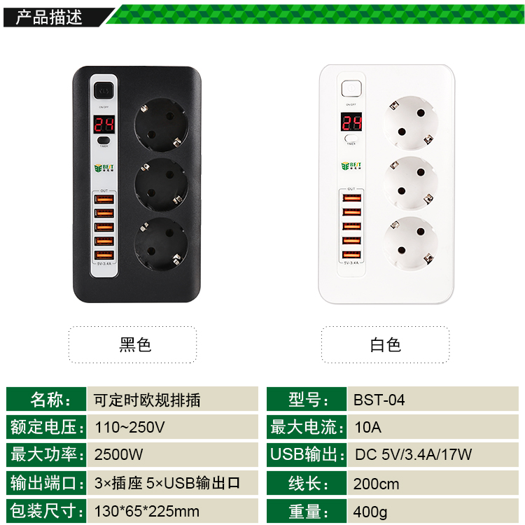 ? 产品名称: 可定时欧规排插? 产品型号: BST-04? 产品类别: 插座系列