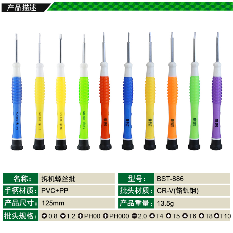 ? 产品名称: 拆机螺丝刀? 产品型号: BST-886? 产品类别: 螺丝批系列