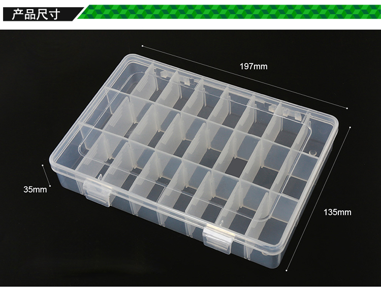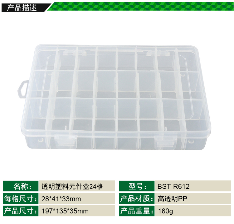 ? 产品名称: 24格透明塑料元件盒? 产品型号: BST-R612? 产品类别: 元件盒系列