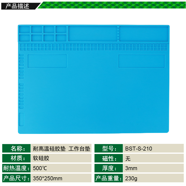 返回当前位置: 首页 / 产品中心 / BST-S-210 耐高温硅胶垫 工作台垫 带零件收纳区 隔热垫