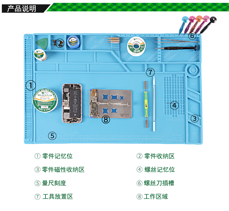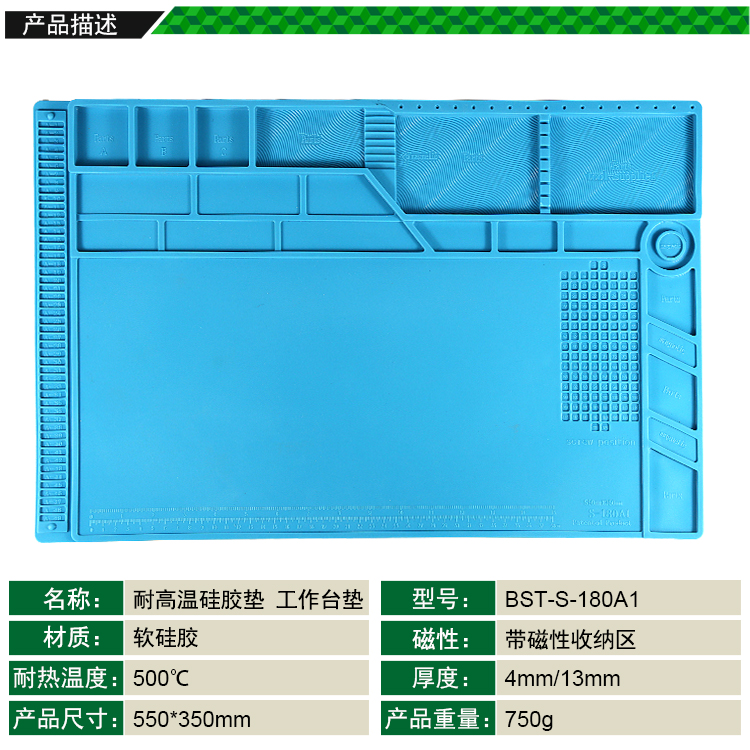 返回当前位置: 首页 / 产品中心 / BST-S-180A1 耐高温硅胶垫 工作台垫 带磁性收纳区 螺丝记忆定位区 工作面积加大 隔热垫