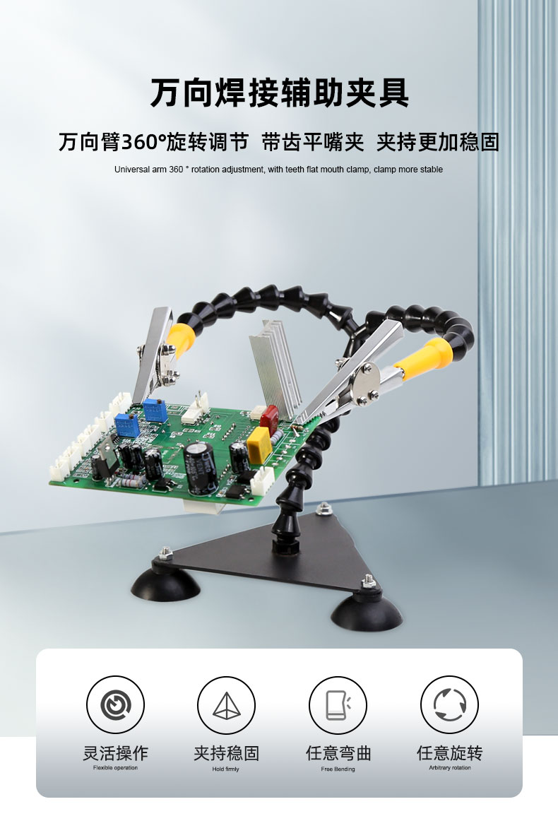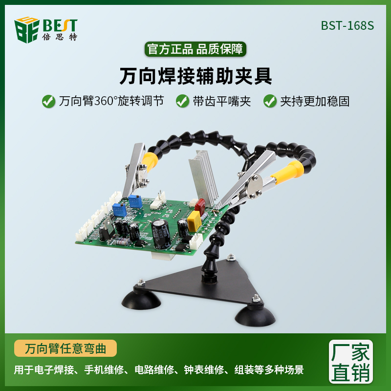 返回当前位置: 首页 / 产品中心 / BST-168S 万向焊接夹具 多功能焊接辅助电路板固定支架 双臂竹节管焊台辅助夹具