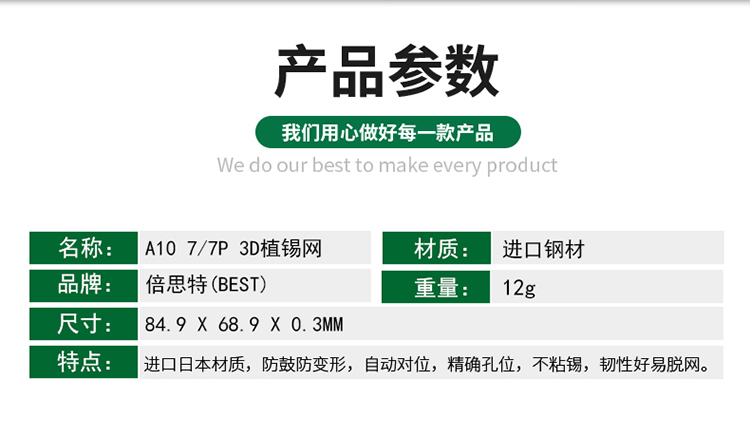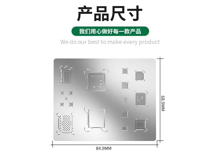 ? 产品名称: 3D凹槽定位植锡钢网? 产品型号: BST-A10? 产品类别: 植锡网系列