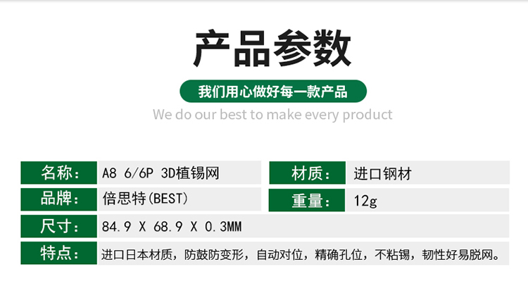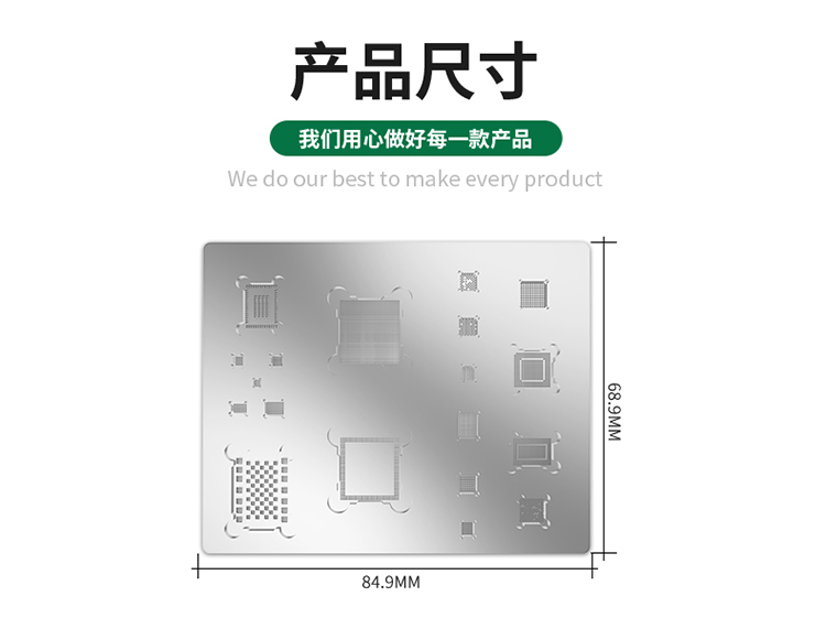 ? 产品名称: 3D凹槽定位植锡钢网? 产品型号: BST-A8? 产品类别: 植锡网系列