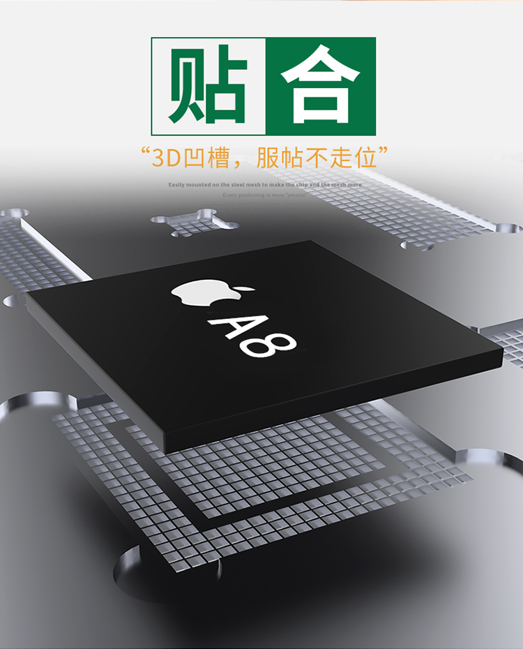 返回当前位置: 首页 / 产品中心 / BST-A8 iP6/6P 3D植锡网 3D凹槽定位植锡钢网