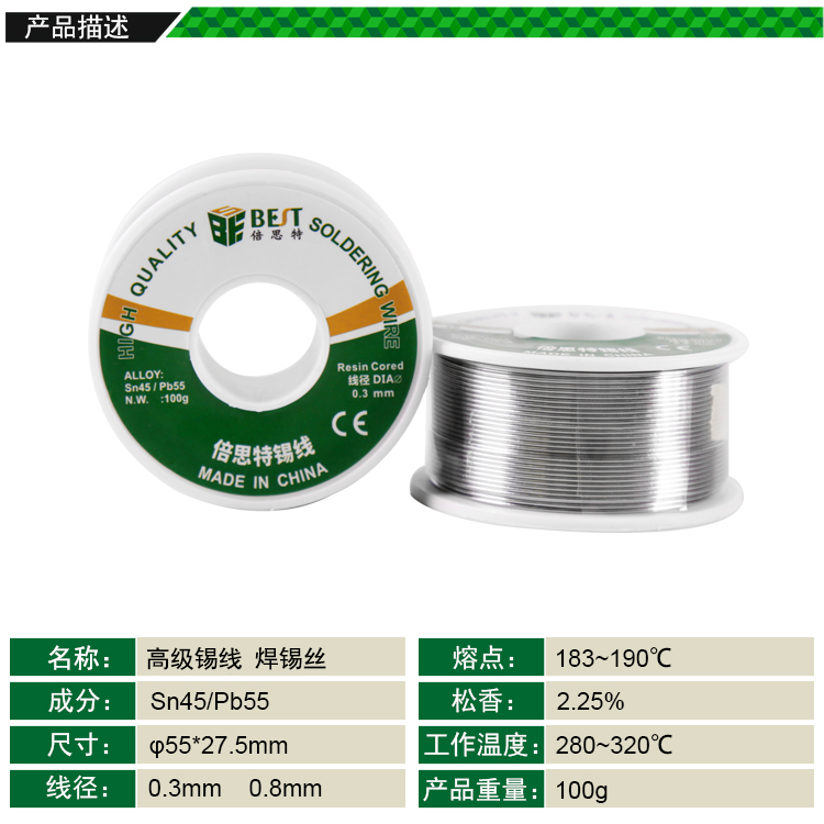 ? 产品名称: 高级锡线 焊锡丝? 产品品牌: BEST? 产品类别: 锡线耗材系列
