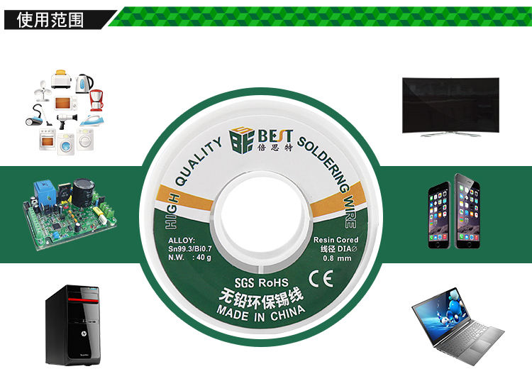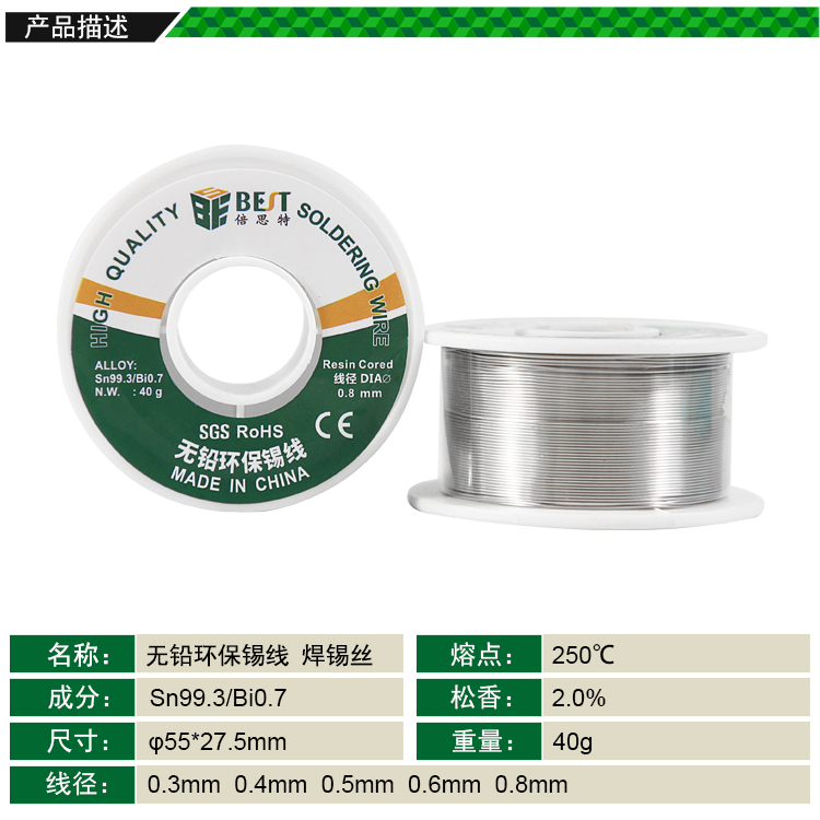 ? 产品名称: 无铅锡线 焊锡丝? 产品品牌: BEST? 产品类别: 锡线耗材系列