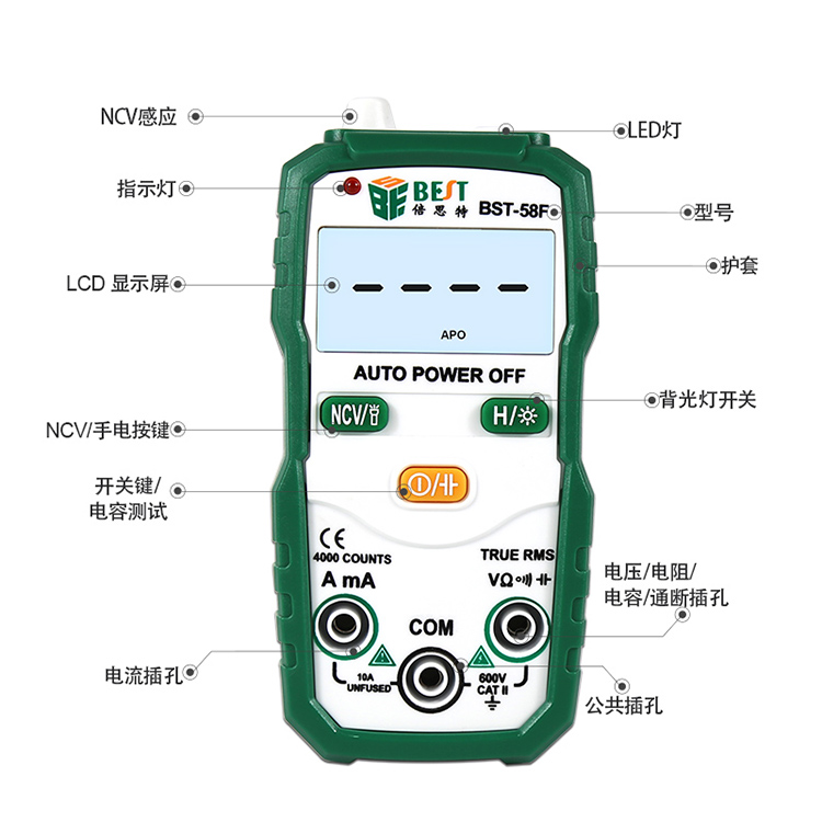返回当前位置: 首页 / 产品中心 / BST-58F 全自动量程万用表 无需拨档智能识别数字万用表 家用迷你电工仪表