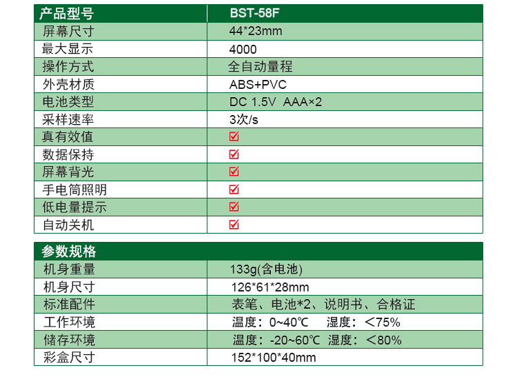 ? 产品名称: 全自动量程万用表? 产品型号: BST-58F? 产品类别: 万用表系列