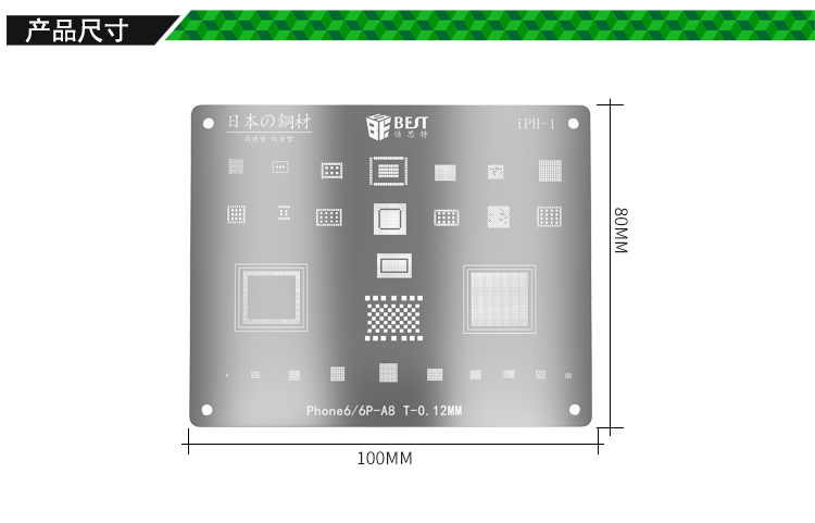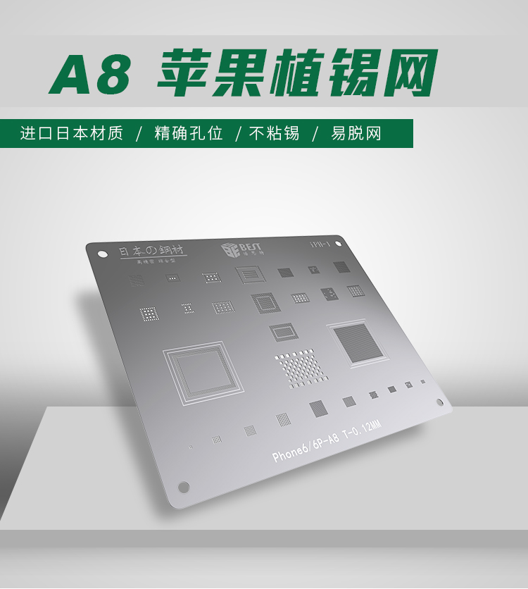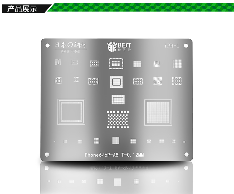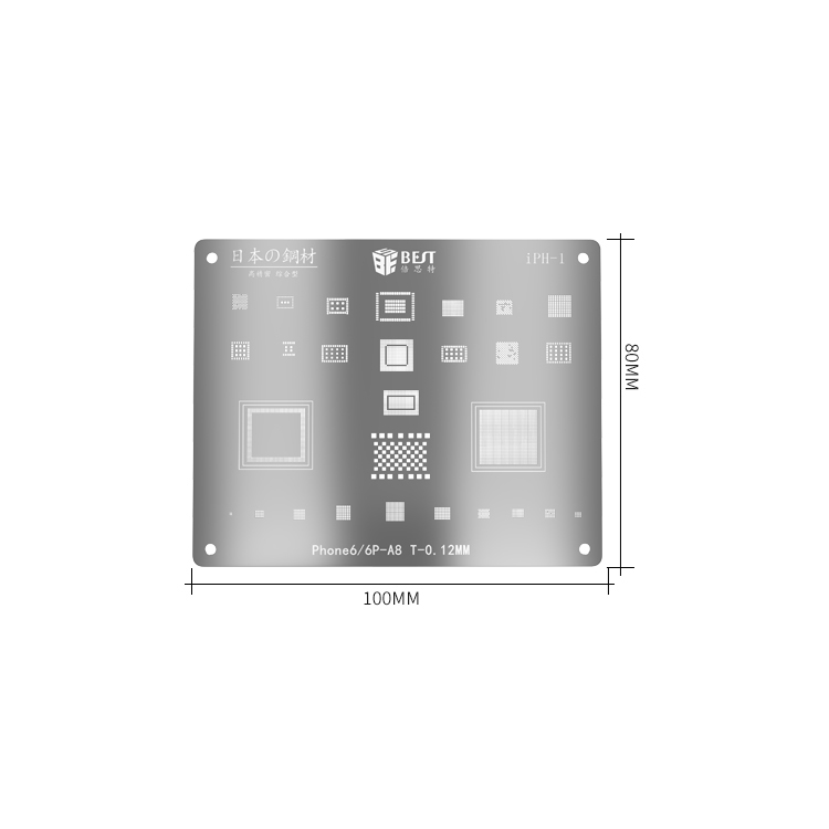 ? 产品名称: iPhone 6/6P-A8 BGA植锡网? 产品型号: iPH-1? 产品类别: 植锡网系列