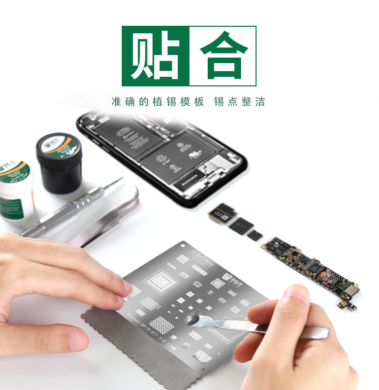 返回当前位置: 首页 / 产品中心 / iPH-4 iPhone X/8/8P-A11 BGA植锡网 多用植锡方孔定位钢网 植锡卡