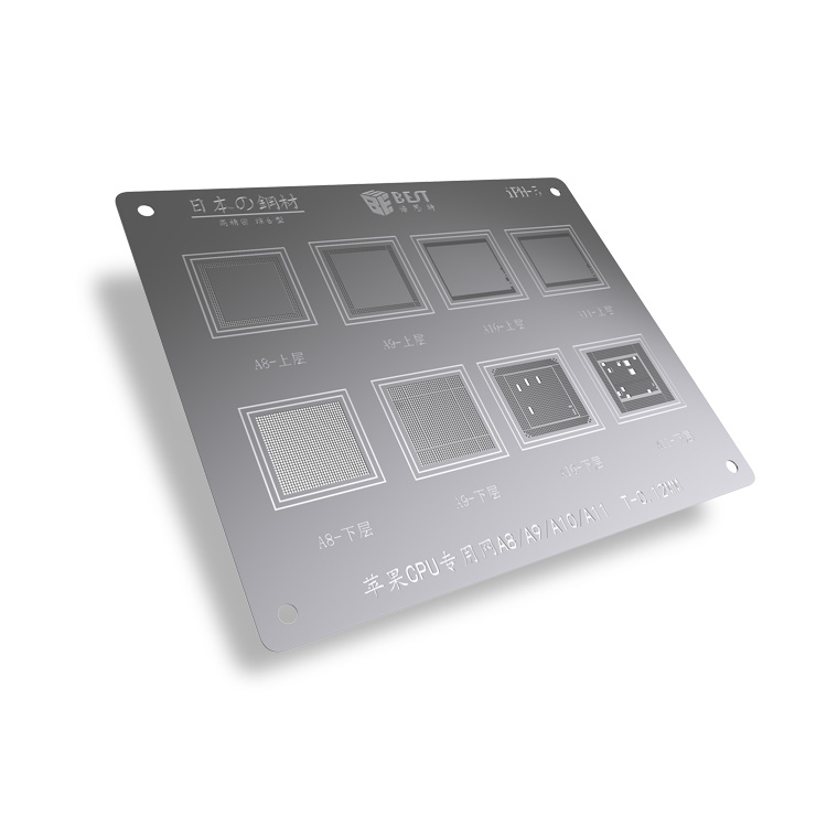 返回当前位置: 首页 / 产品中心 / iPH-5 A8/A9/A10/A11 CPU专用植锡网 多用植锡方孔定位钢网 植锡卡