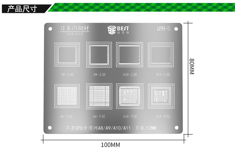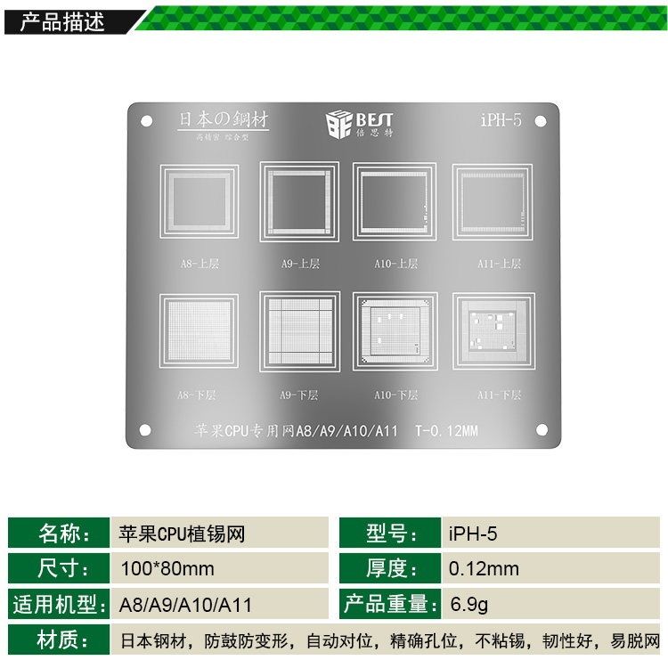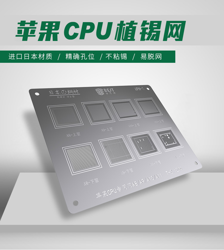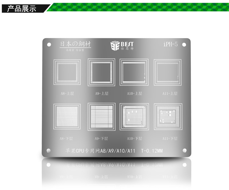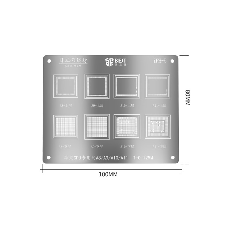 ? 产品名称: A8/A9/A10/A11 CPU专用植锡网? 产品型号: iPH-5? 产品类别: 植锡网系列