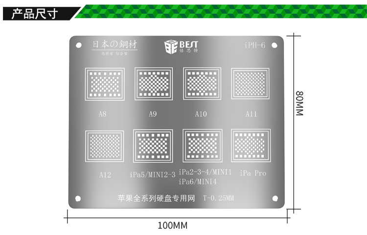 ? 产品名称: 手机CPU硬盘专用植锡网? 产品型号: iPH-6? 产品类别: 植锡网系列
