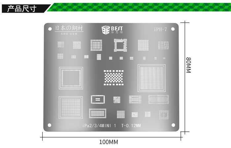 ? 产品名称: iPad 2/3/4/Mini 1专用植锡网? 产品型号: iPH-7? 产品类别: 植锡网系列