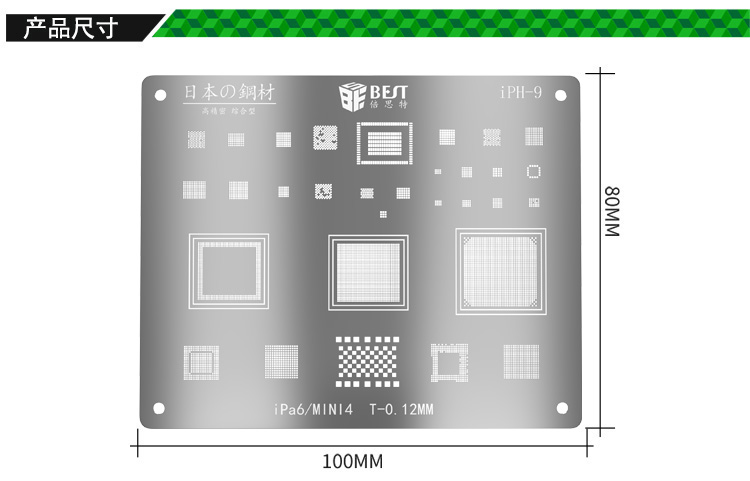 ? 产品名称: iPad 6/Mini4专用植锡网? 产品型号: iPH-9? 产品类别: 植锡网系列
