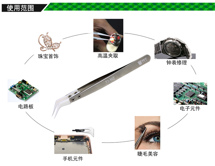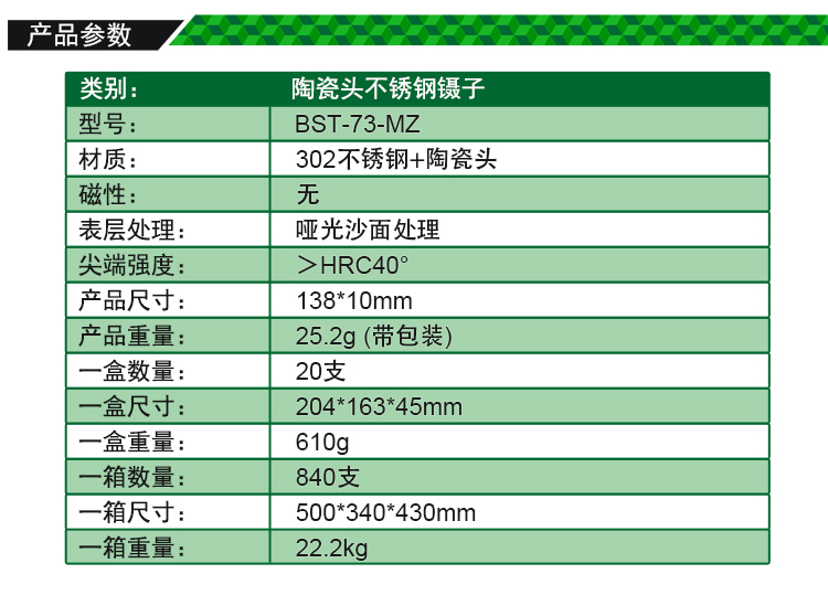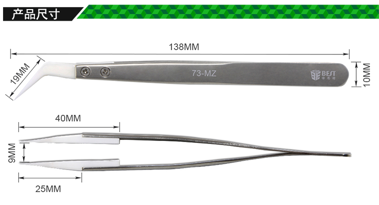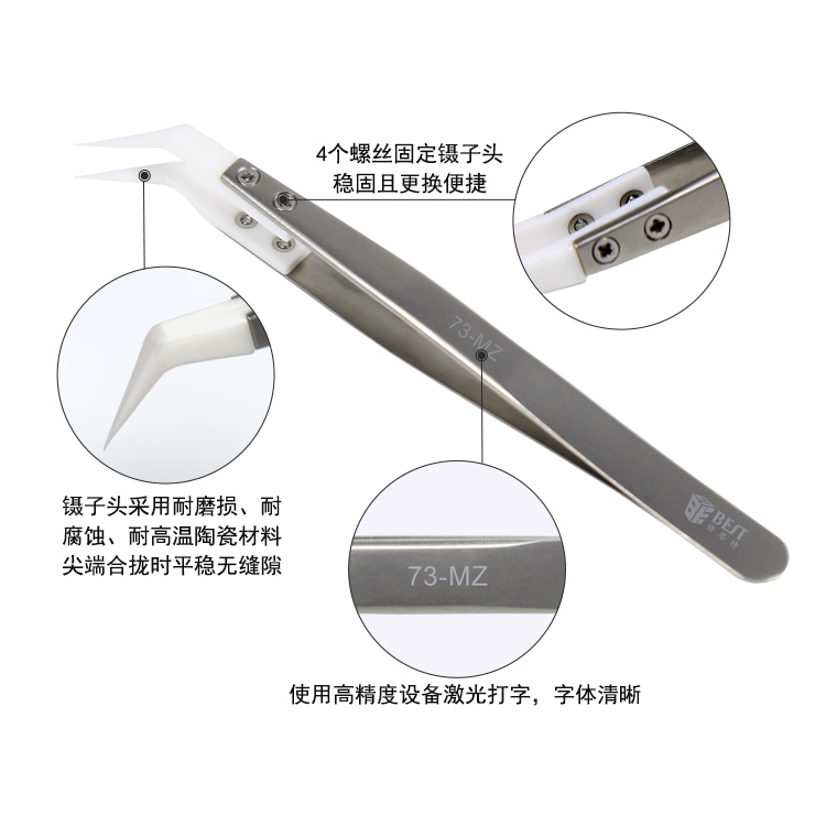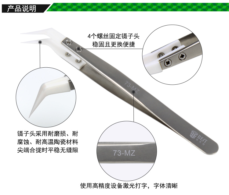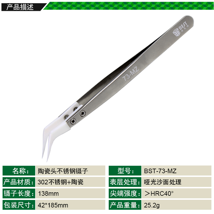 ? 产品名称: 陶瓷头不锈钢镊子? 产品型号: BST-73-MZ? 产品类别: 镊子系列