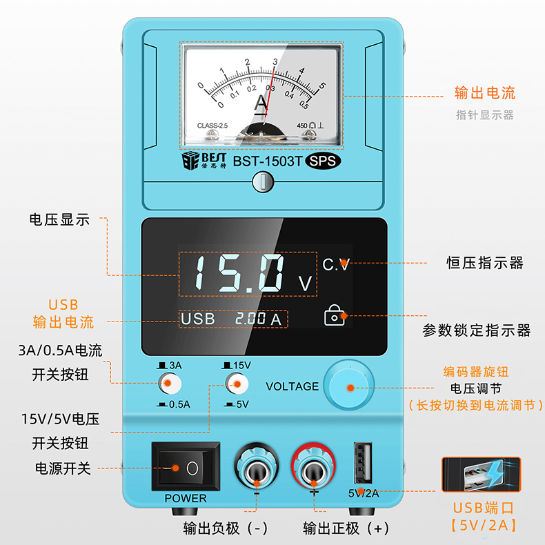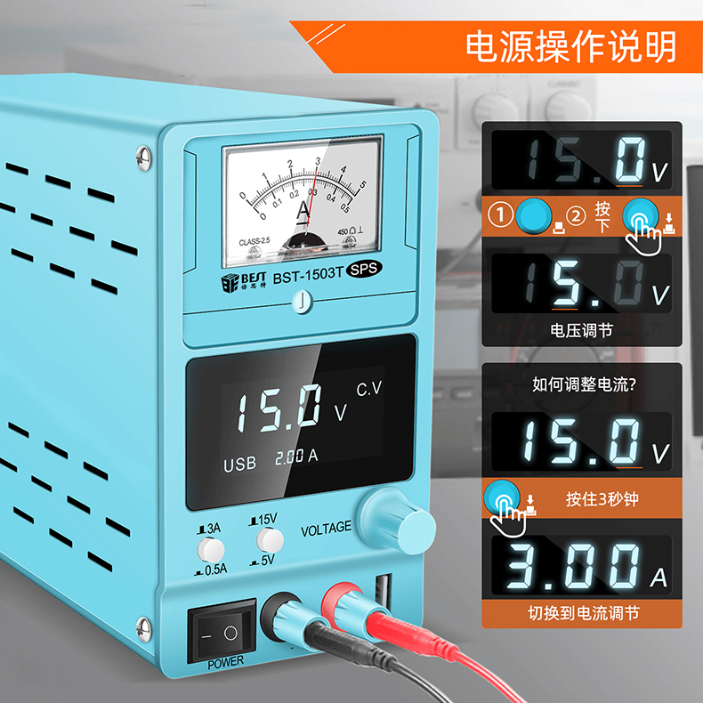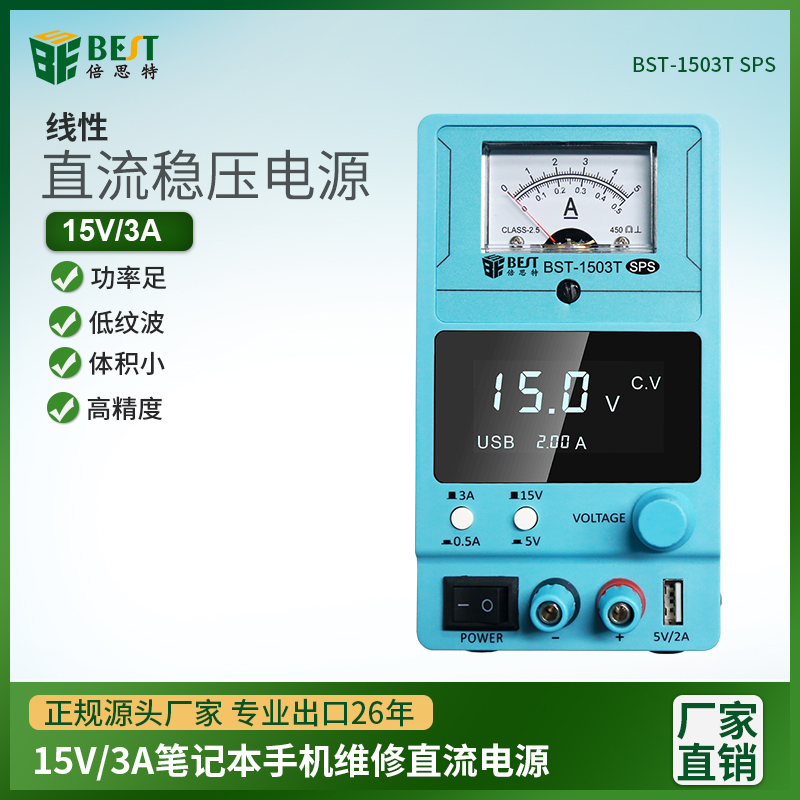 返回当前位置: 首页 / 产品中心 / BST-1503T SPS 线性直流稳压电源 固测可调直流稳压电源15V/3A笔记本电脑手机维修电源