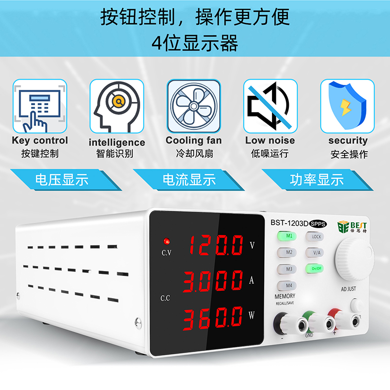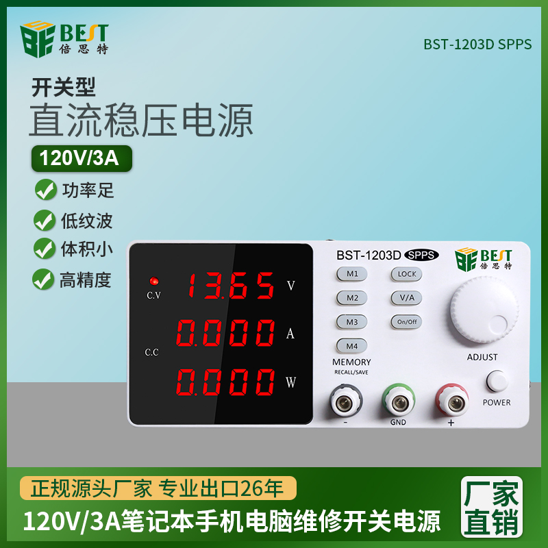 返回当前位置: 首页 / 产品中心 / BST-1203D SPPS 开关型直流稳压电源 超大电压固测可调直流稳压电源120V/3A笔记本电脑手机维修开关电源