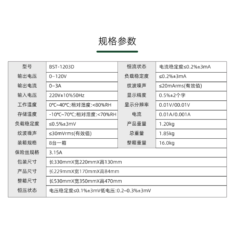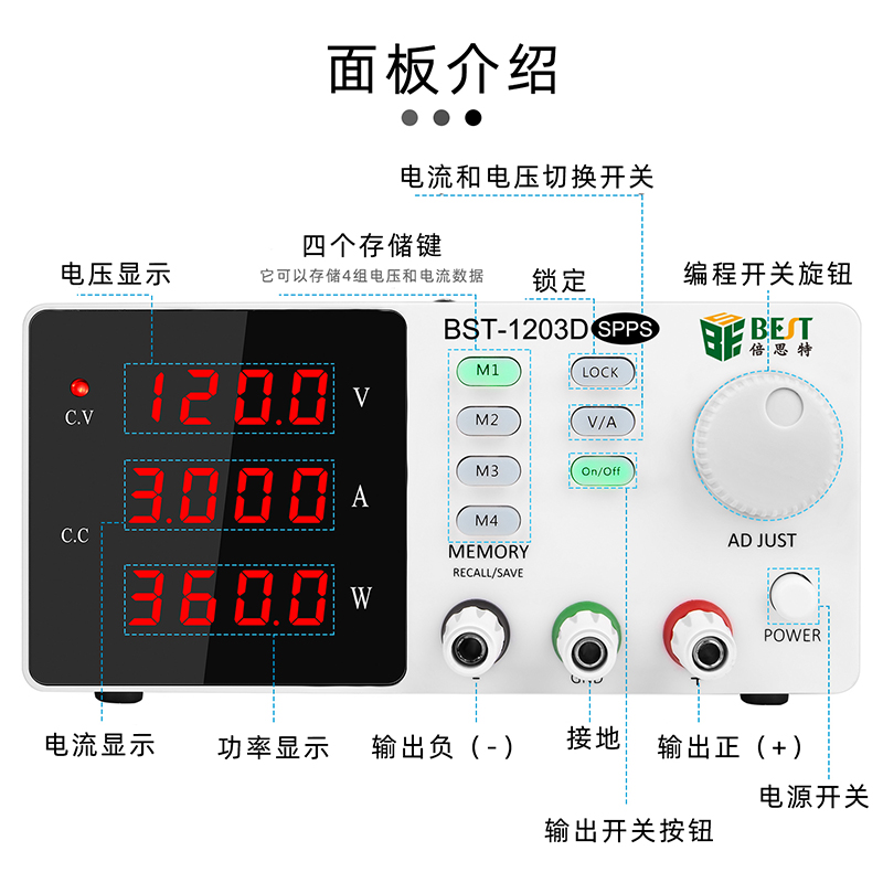 ? 产品名称: 开关直流稳压电源? 产品型号: BST-1203D SPPS? 产品类别: 直流电源系列