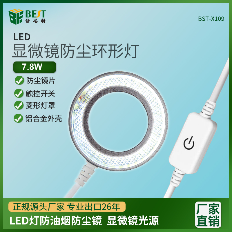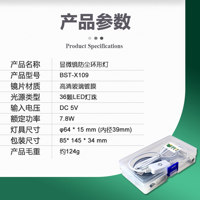 ? 产品名称: 显微镜防尘环形灯? 产品型号: BST-X109? 产品类别: 显微镜系列