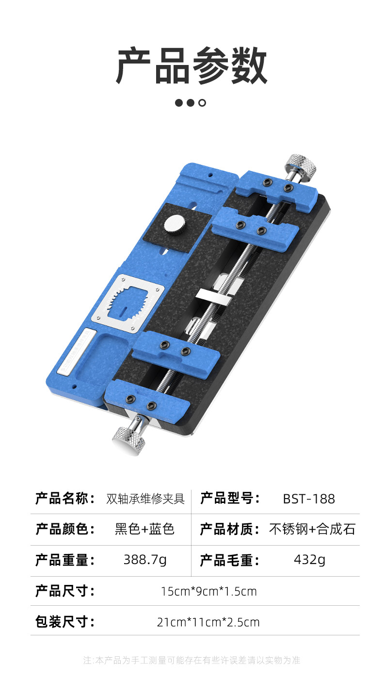 返回当前位置: 首页 / 产品中心 / BST-188 多功能双轴承维修夹具 耐高温手机主板维修卡具