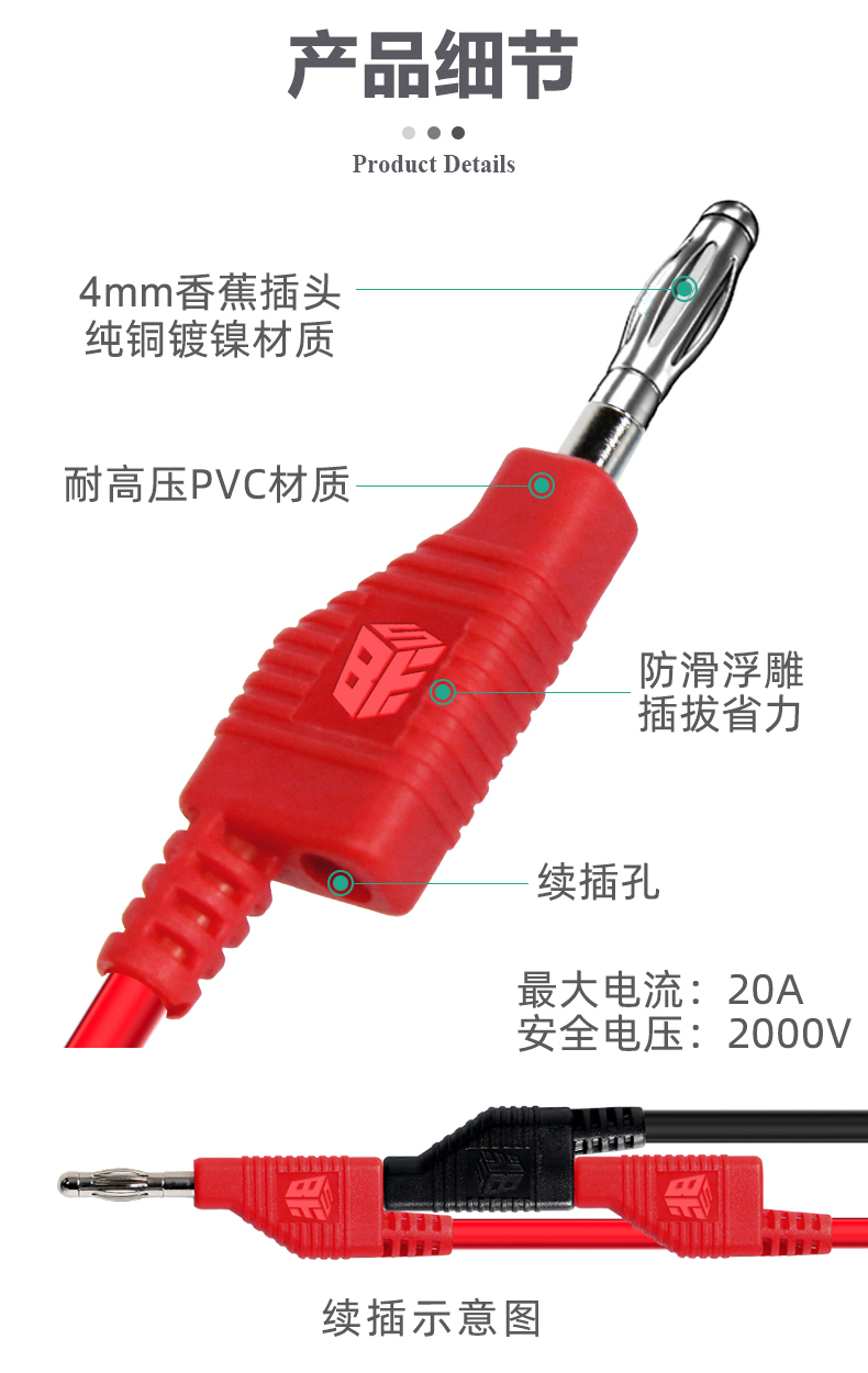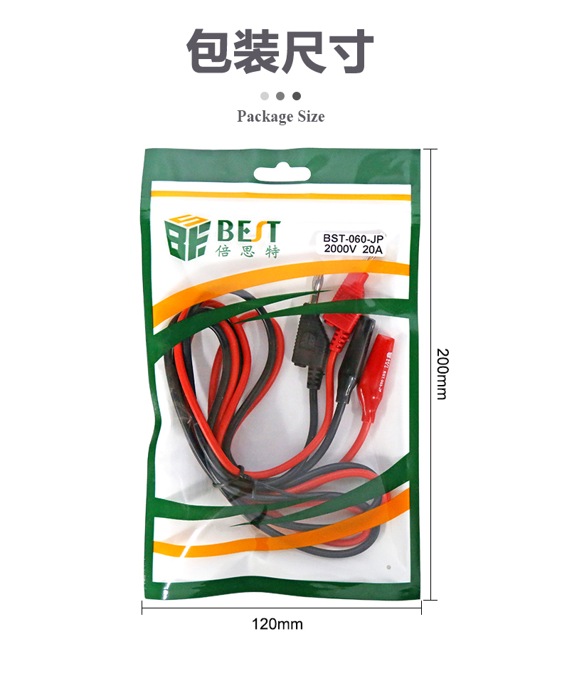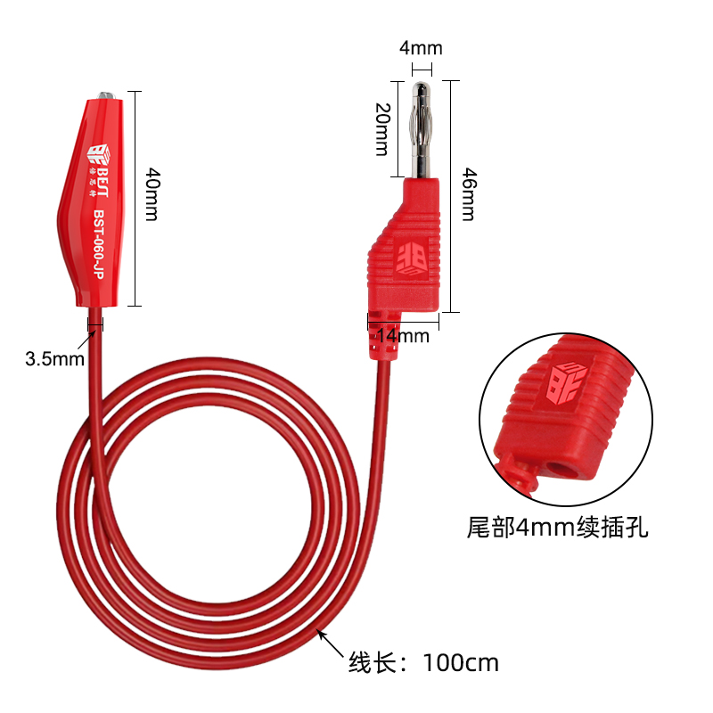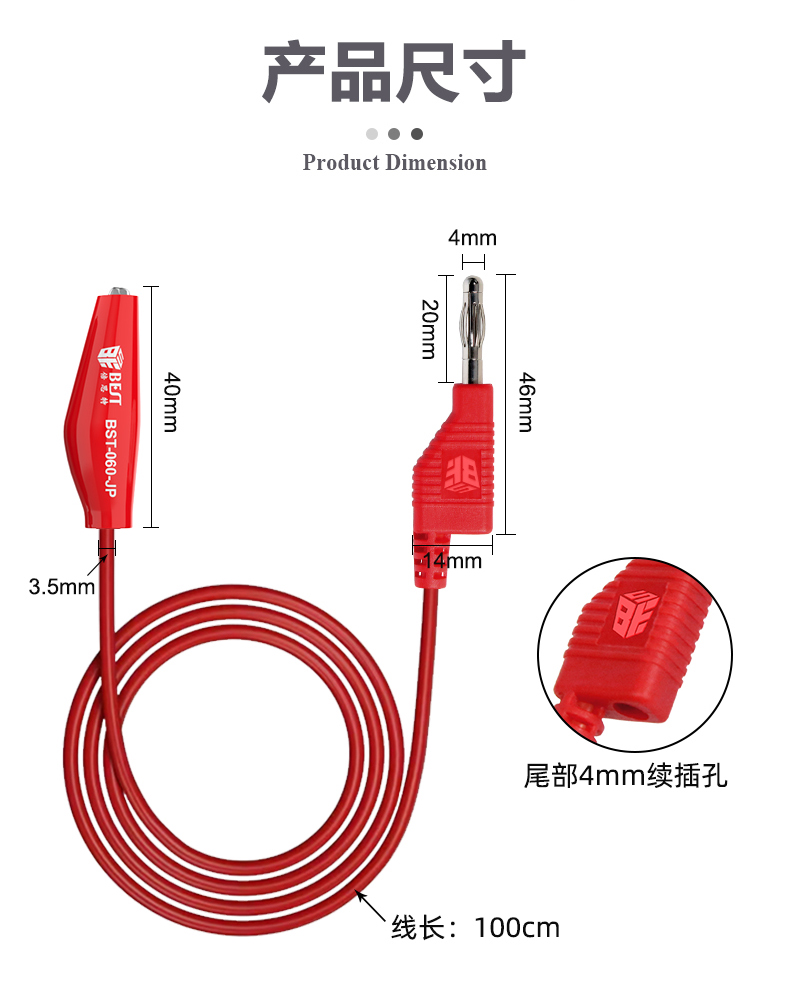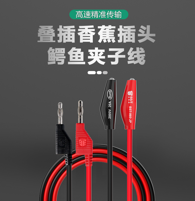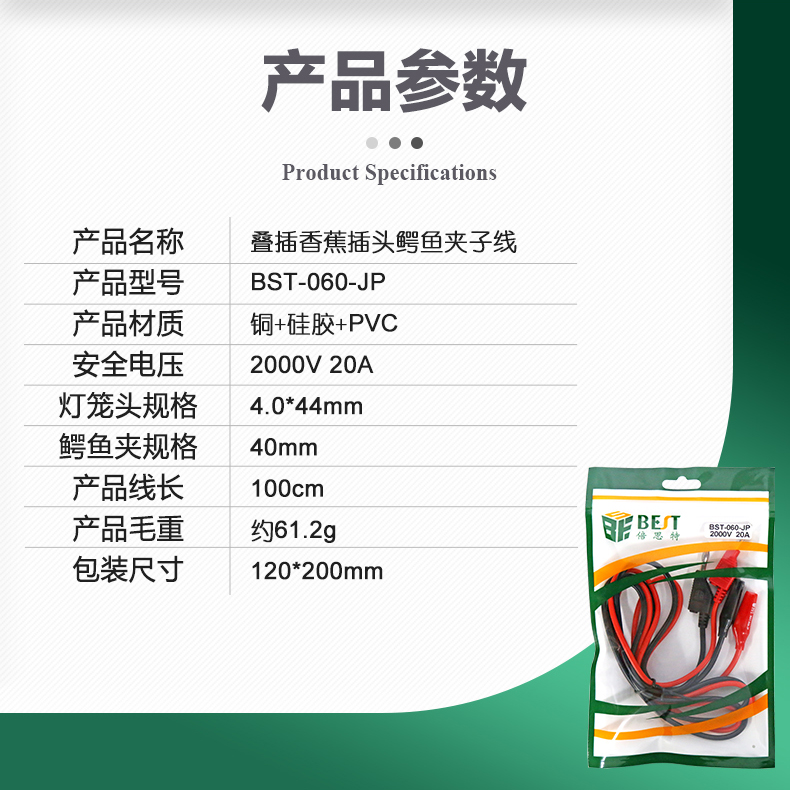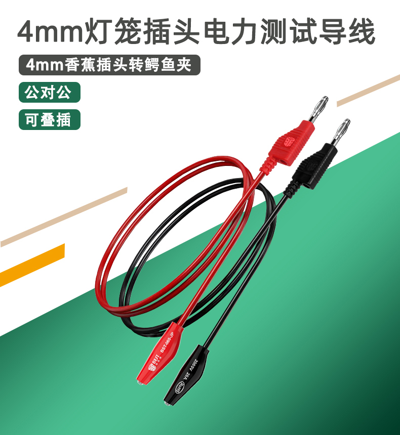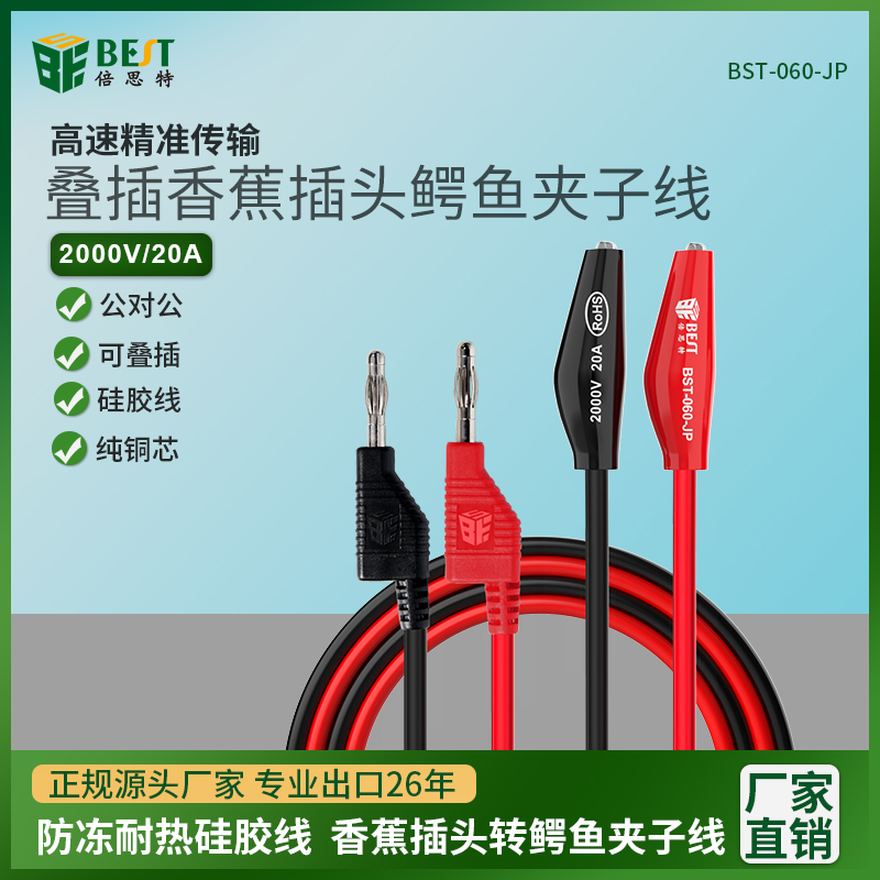 ? 产品名称: 叠插香蕉插头转鳄鱼夹子线? 产品型号: BST-060-JP? 产品类别: 表笔线系列