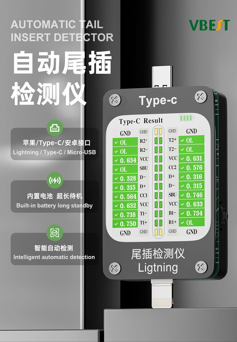 返回当前位置: 首页 / 产品中心 / VB-U4 全自动尾插检测仪 免拆手机充电排线尾插测试仪 双接口超长待机智能测试苹果安卓手机平板电脑
